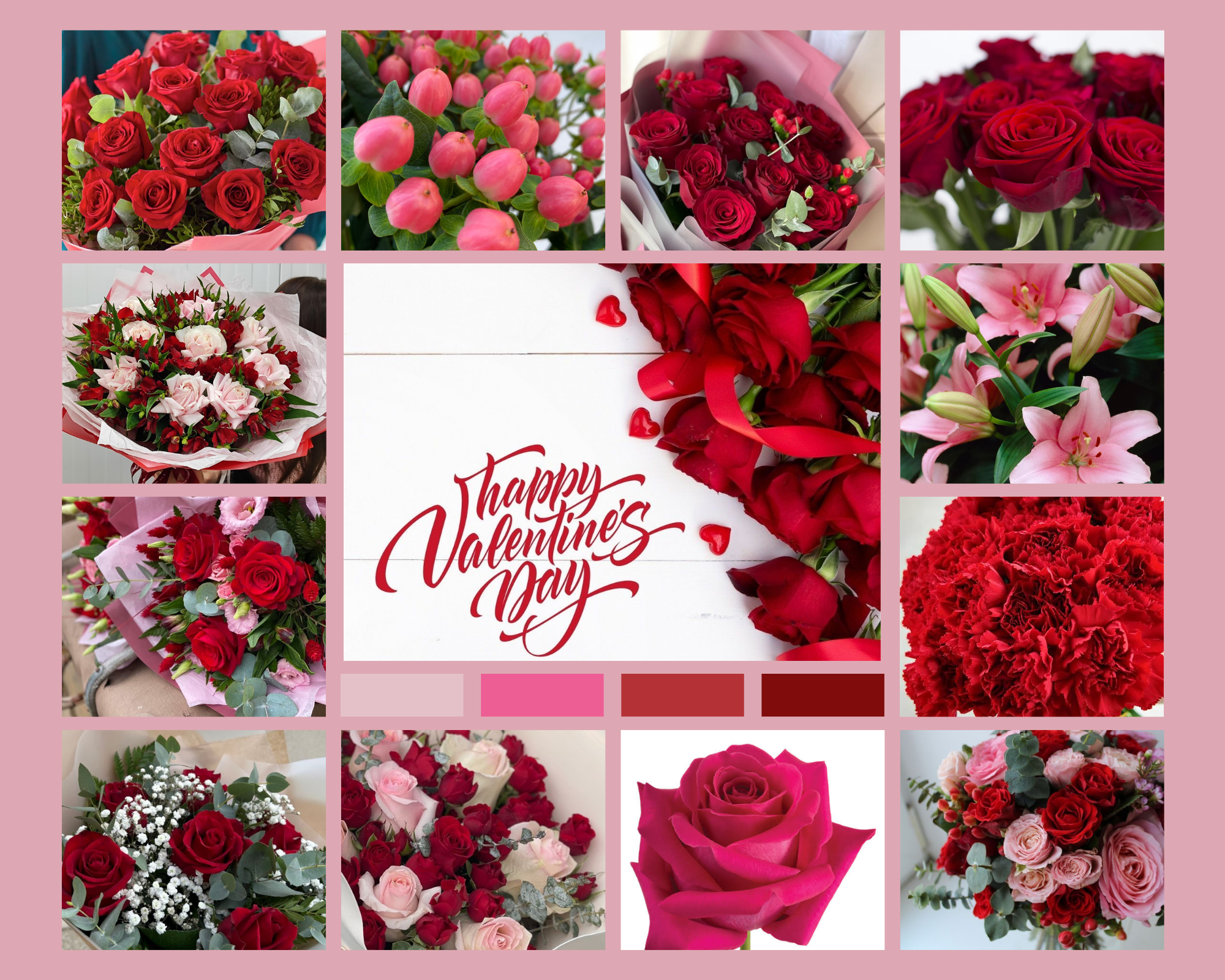 Pre-Order your fresh Valentine's Day flowers now. Choices of traditional Red Roses bouquets, Pretty Pinks and mixed Red and Pink flower bouquets. Collection from Kilmuckridge and local delivery available. Contact Isabelle on 087-2811790