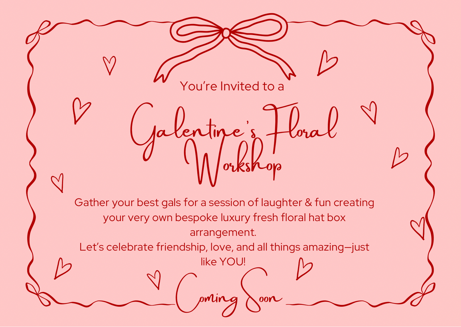 Celebrate Galentine's with an intimate floral workshop. Create a beautiful arrangement, enjoy...