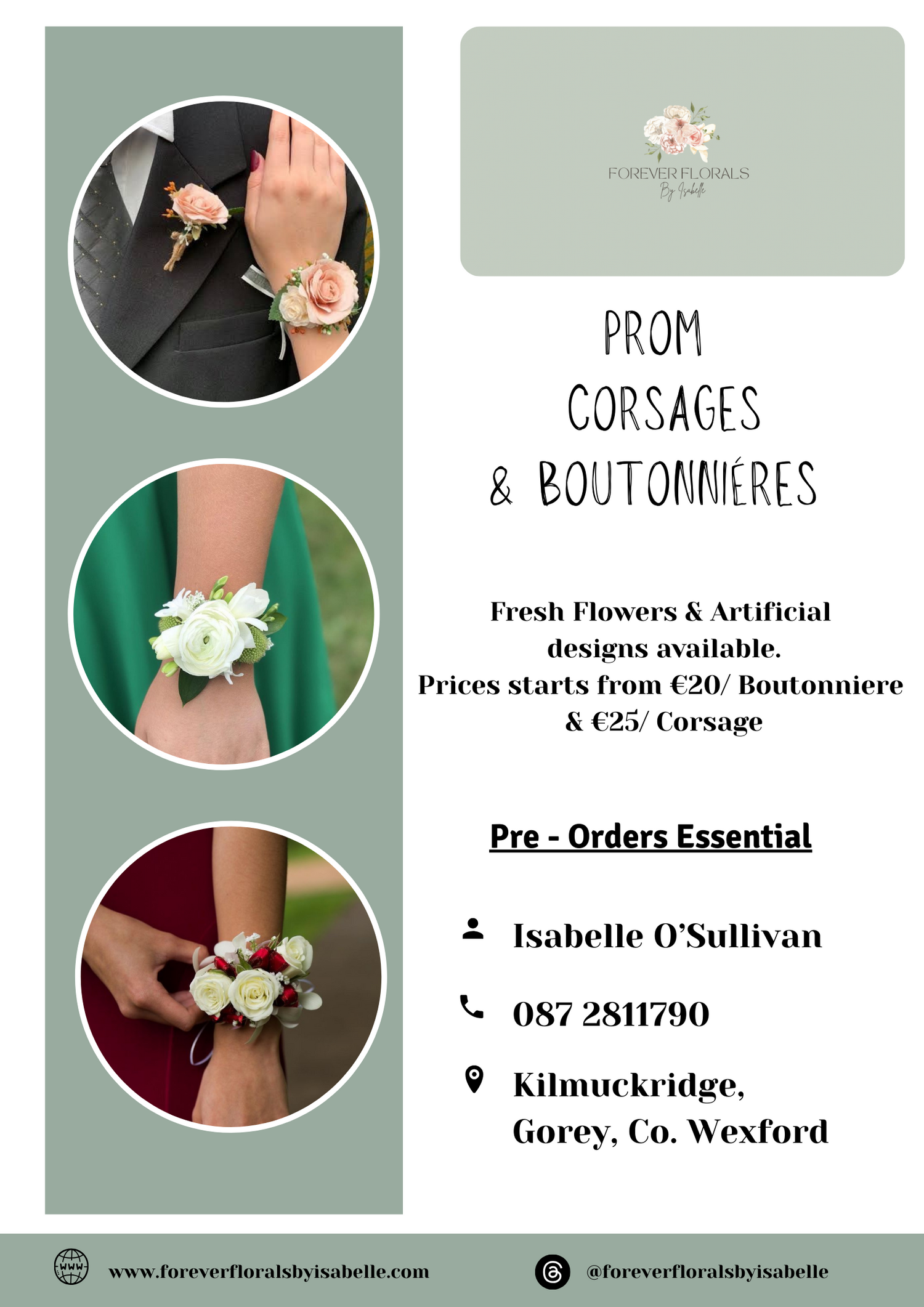 Pre-order your floral corsage & boutonnieres now, different designs & colour schemes available. Choose from Fresh flowers or Artificial flowers.